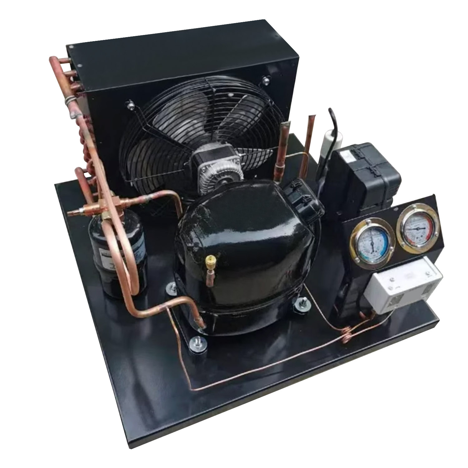 Commercial Refrigerator Condensing Unit for Cold Room Freezer Dry Box Display Cabinet Laboratory Water Scroll Thermoelectric Peltier Industrial Portable Small Aquarium Low Temperature Active Cooling Vertical Horizontal Stand Single Double Underbench